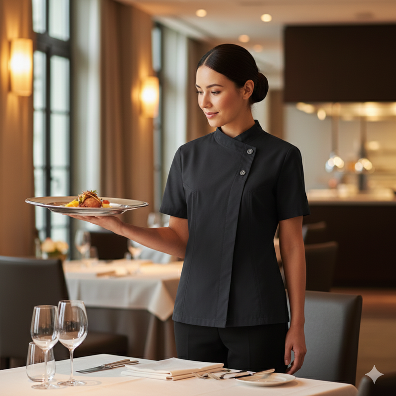 GIACCA CUOCO DONNA DAL DESIGN MODERNO, TESSUTO ULTRALEGGERO, UN VERO