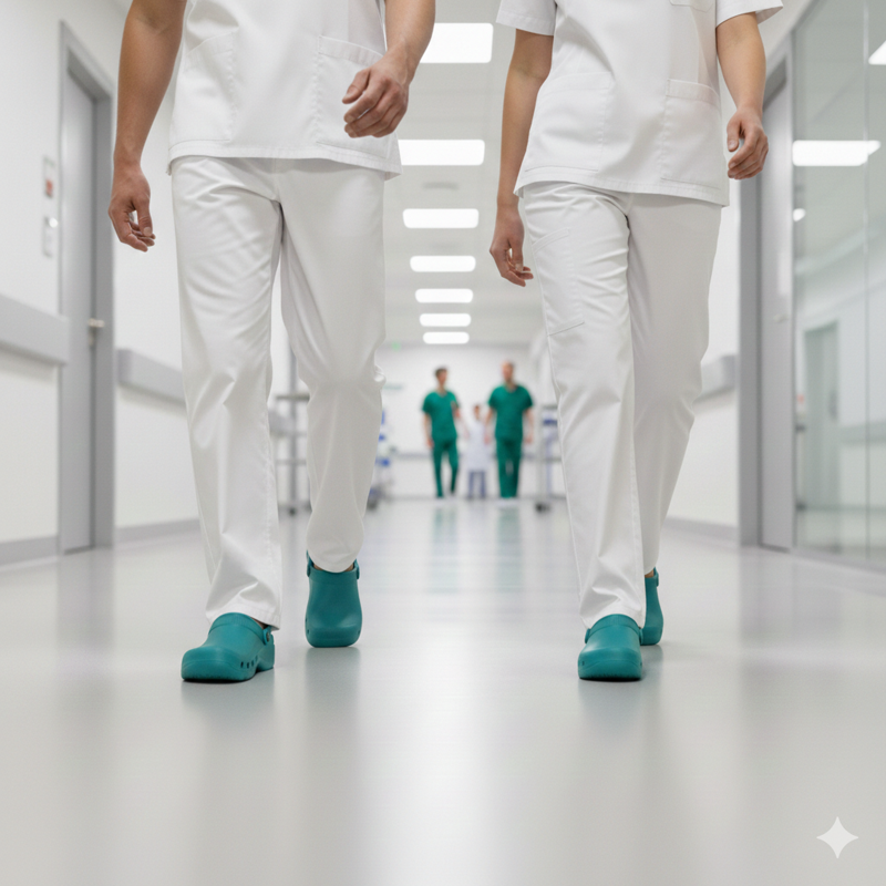 ZOCCOLO ULTRALEGGERO IN EVA VERDE, PRIVO DI LATTICE, MONOPEZZO, ANATOMICO E ANTISCIVOLO. ADATTO PER IL LAVAGGIO A MACCHINA FINO A 40°. CINTURINO POSTERIORE RIPIEGABILE, FORATO SUI LATI PER FACILITARE LA TRASPIRAZIONE, LA PULIZIA E PER EVITARE LA PENETRAZIONE DIRETTA DEL LIQUIDO NELLO ZOCCOLO. SUOLA CON MICROPUNTI CHE MASSAGGIANO PER STIMOLARE LA CIRCOLAZIONE SANGUIGNA. SOLETTA INTERNA DI TESSUTO SU SCHIUMA DI LATTICE CON TRATTAMENTO ANTIBATTERICO. ULTRALEGGERO, SOLO 180 GRAMMI AL PAIO.